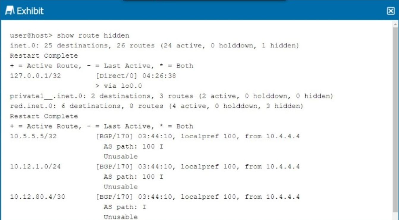 Referring to the exhibit, why are the BGP routes hidden?