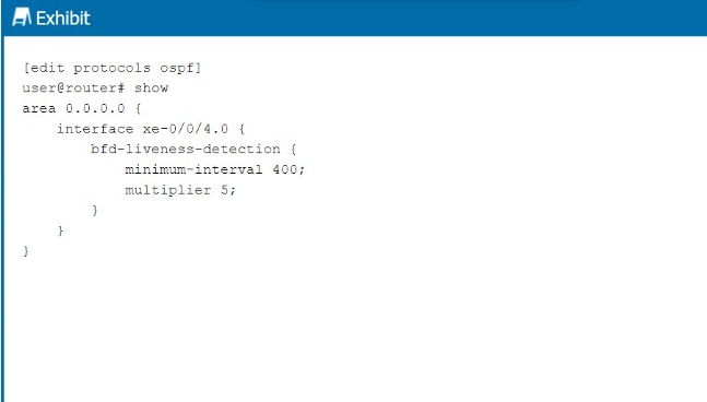 Referring to the exhibit, at which interval will the interface be considered down if no hello packets are received?