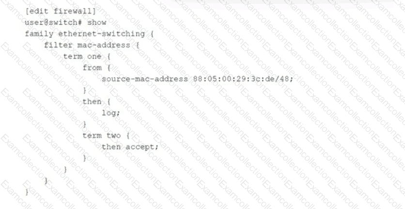 Which two actions are performed by the firewall filter shown in the exhibit? (Choose two.)