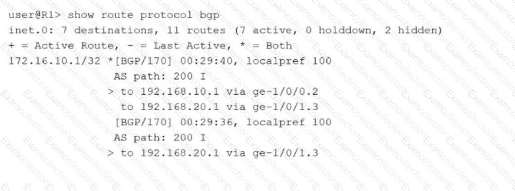 You are receiving the same BGP Internet routes on R1 from both upstream ISPs. You are asked to load-balance traffic destined to the Internet across both ISPs.