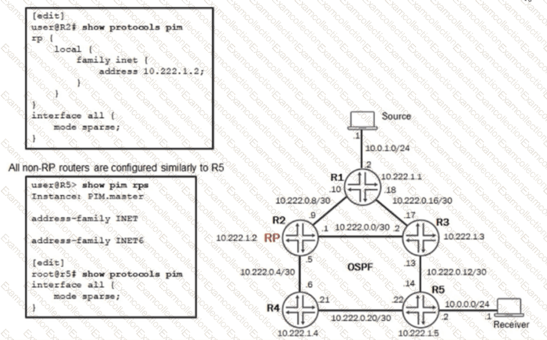 You need to configure the non-RP routers in your network to dynamically learn the location of the RP using standard protocols only. You have already applied the configuration shown in the exhibit, but the routers have not learned the location of the RP.
