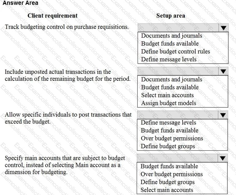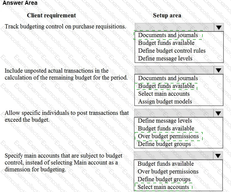 A client is implementing the Budgeting module in Dynamics 365 Finance.