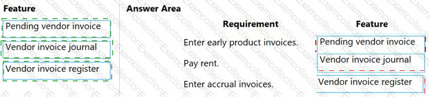 Which features should you use? To answer, drag the appropriate features to the correct requirements. Each feature may be used once or not at all. You may need to drag the split bar between panes or scroll to view content.
