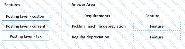 Which features should you use? To answer, drag the appropriate features to the correct requirements. Each feature may be used once, more than once, or not at all. You may need to drag the split bar between panes or scroll to view content.