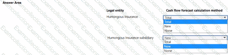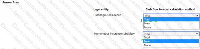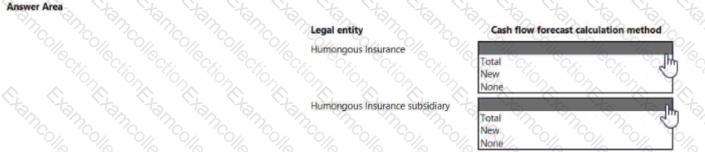 How should you configure cash flow management? To answer, select the appropriate options m the answer area.