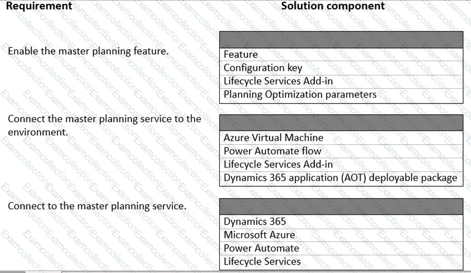 A company uses Dynamics 365 Supply Chain Management. The company plans to implement master planning.