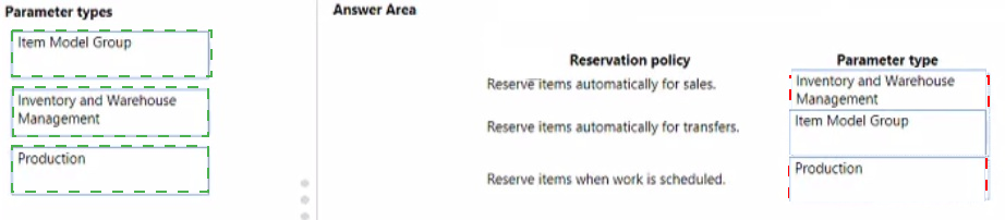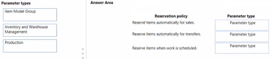 Which parameters should you select? To answer, drag the appropriate parameters to the correct reservation policies Each parameter may be used once, more than once, or not at all. You may need to drag the split bar between panes or scroll to view content.