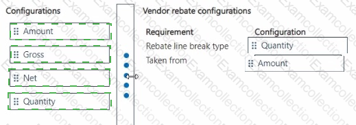 Which configurations should you use for the rebates? To answer, move the appropriate configurations to the correct requirements. You may use each configuration once, more than once, or not at all. You may need to move the split bar between panes or scroll to view content.