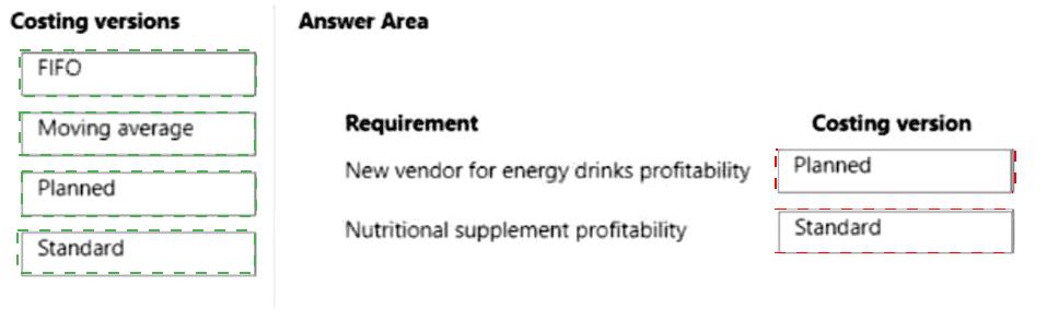 Which costing versions should you use? To answer, drag the appropriate costing versions to the correct requirements. Each costing version may be used once, more than once, or not at all. You may need to drag the split bar between panes or scroll to view content.