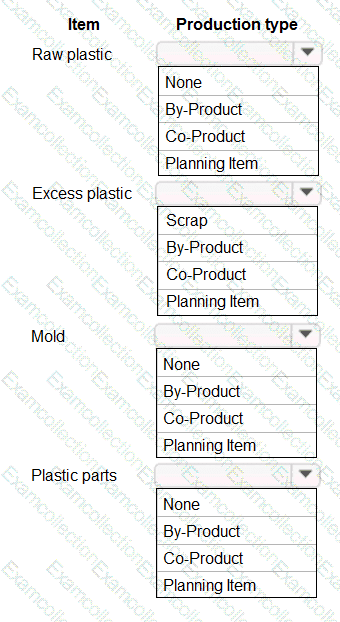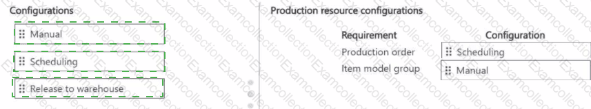 How should you configure the prototype production order? To answer, move the appropriate configurations to the correct requirements. You may use each configuration once, more than once, or not at all. You may need to move the split bar between panes or scroll to view content.