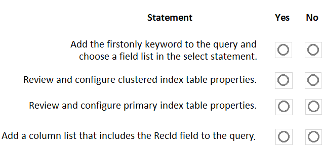 For each of the following statements, select Yes if the statement is true. Otherwise, select No.