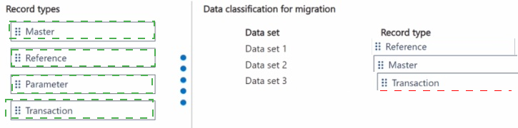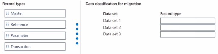 Which record type should you use for each data set? To answer, move the appropriate record type to the correct data set. You may use each record type once, more than once, or not at all. You may need to move the split bar between panes or scroll to view content.