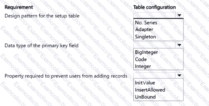Which table configurations should you use? To answer, select the appropriate options in the answer area.