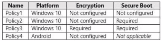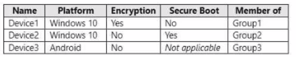 You have devices enrolled in Microsoft Intune as shown in the following table.