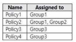 The device compliance policies have the assignments shown in the following table.
