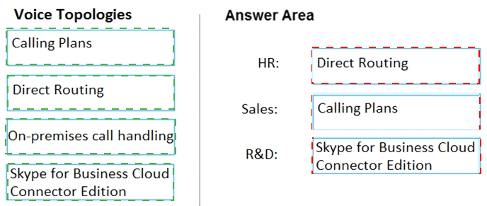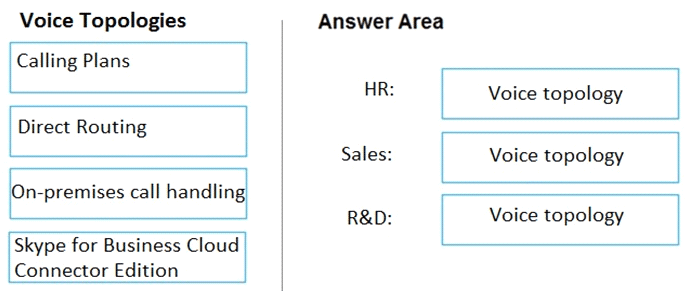 You need to recommend a voice topology for the departments. The topology must meet the calling requirements and the security requirements.