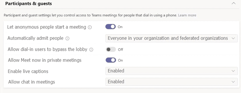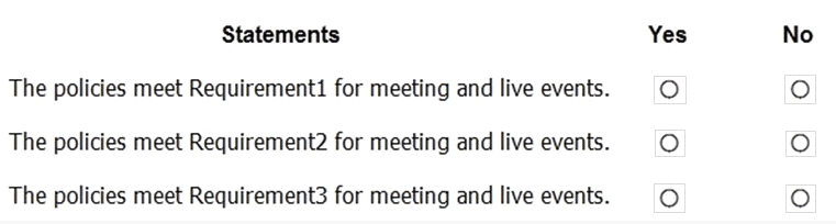 During the pilot project, you review the global policies in the Microsoft Teams admin center.