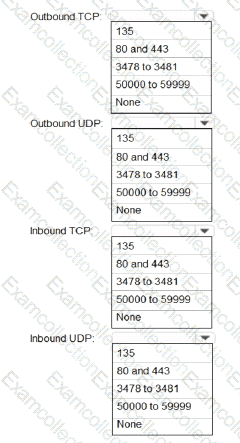 Which inbound and outbound ports should you recommend? To answer, select the appropriate options in the answer area.