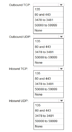Which inbound and outbound ports should you recommend? To answer, select the appropriate options in the answer area.