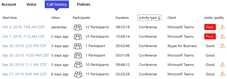 You view the call history as shown in the Call History exhibit. (Click the Call History tab.)