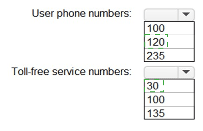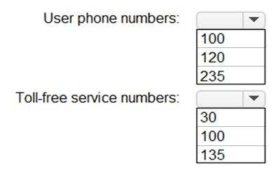 What is the maximum number of user phone numbers and toll-free service numbers you can acquire? To answer, select the appropriate options in the answer area.