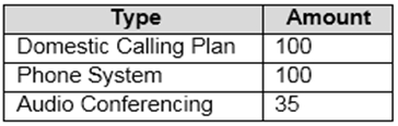 You have a Microsoft 365 subscription that has the licenses shown in the following table.