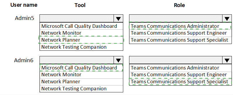 Which tool and role should you recommend for each user? To answer, select the appropriate options in the answer area.