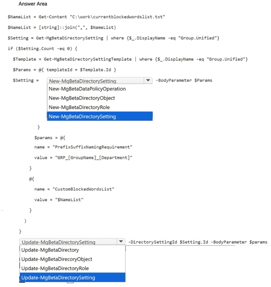 How should you complete the PowerShell cmdlet? To answer, select the appropriate options in the answer area.