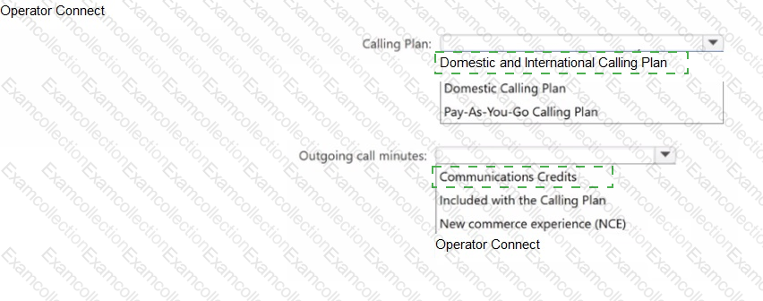 Which Calling Plan should you recommend, and how should you recommend funding the outgoing call minutes for the plan? To answer, select the appropriate options in the answer area.