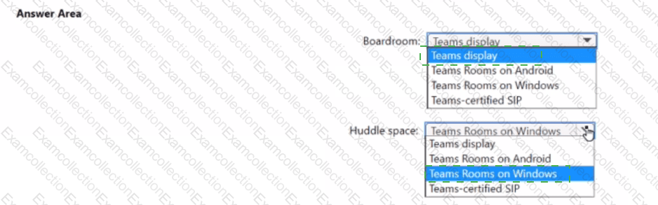 You need to implement the planned changes for the boardrooms and huddle spaces. The solution must meet the technical requirements. Which type of endpoint should you use for each location? To answer, select the appropriate options in the answer area.