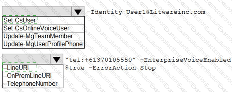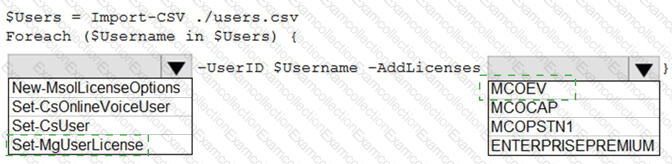 How should you complete the PowerShell script? To answer, select the appropriate options in the answer area.
