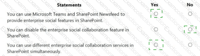 For each of the following statements, select Yes if the statement is true. Otherwise, select No.