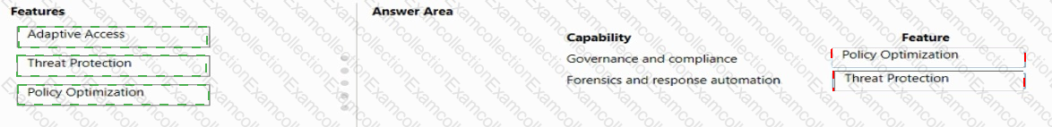 Which features should you choose? To answer, drag the appropriate features to the correct capabilities. Each feature may be used once, more than once, or not at all. You may need to drag the split bar between panes or scroll to view content.