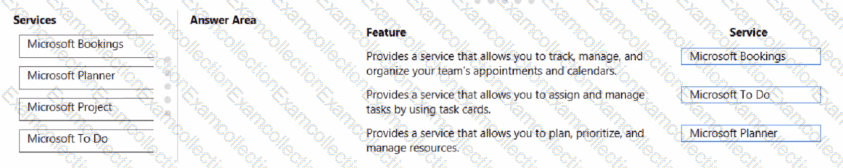 The company is evaluating work management features in Microsoft 365. You need to recommend the appropriate Microsoft 365 services.
