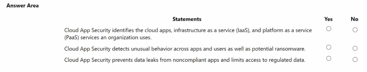 For each of the following statements, select Yes if the statement is true. Otherwise, select No. NOTE: Each correct selection is worth one point.