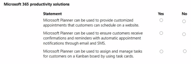 Instructions: For each of the following statements, select Yes if the statement is true. Otherwise, select No.