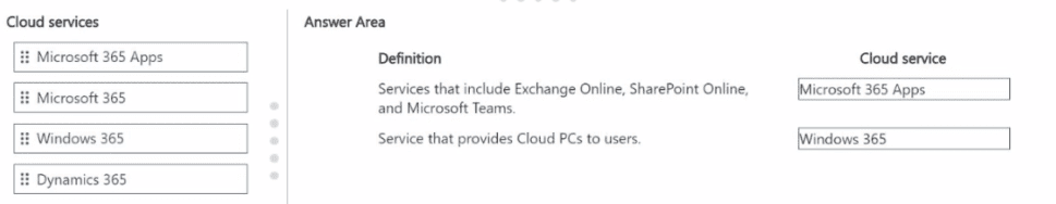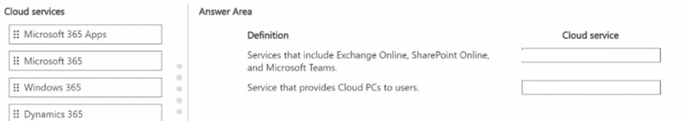 Match each cloud service to its definition.Each cloud service may be used once, more than once, or not at all.