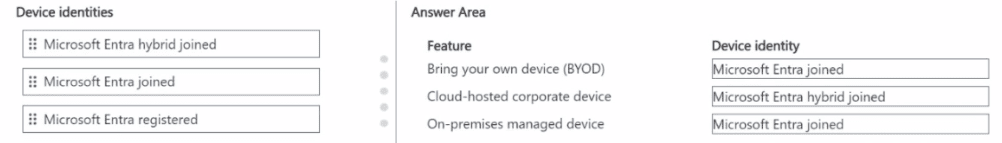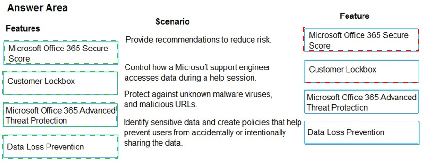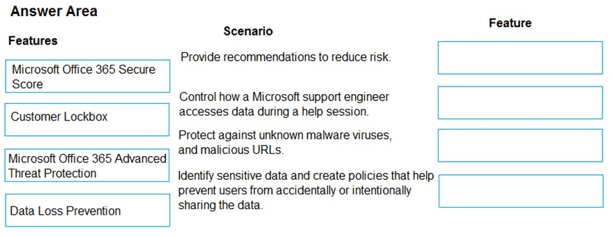 Which features should you implement? To answer, drag the appropriate features to the correct scenarios. Each feature may be used once, more than once, or not at all. You may need to drag the split bar between panes or scrollto view content.