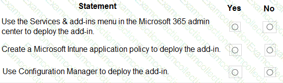 You plan to deploy the ReportMessage add-in to Microsoft Outlook.