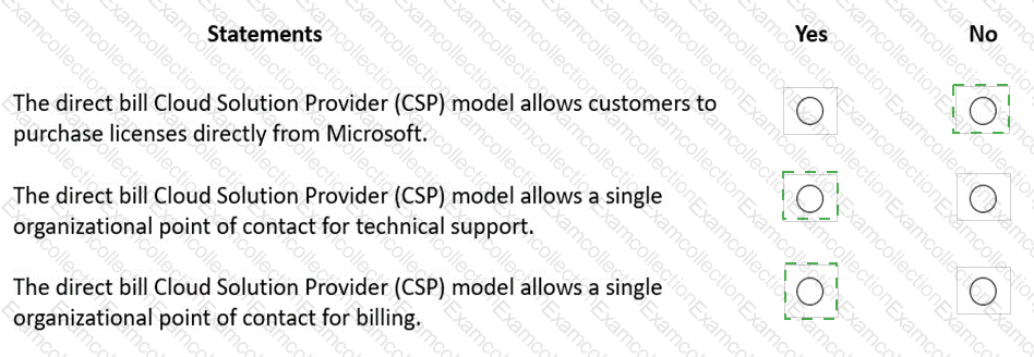 For each of the following statements, select Yes if the statement is true. Otherwise, select No.