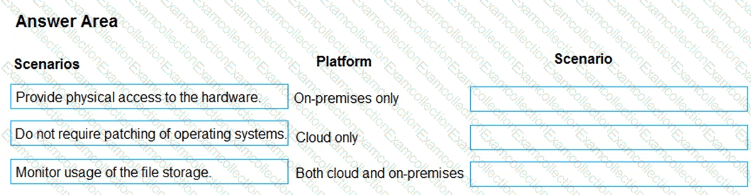 Instructions: To answer, drag the appropriate scenario from the column on the left to its platform or platforms on the right. Each scenario may be used only once.