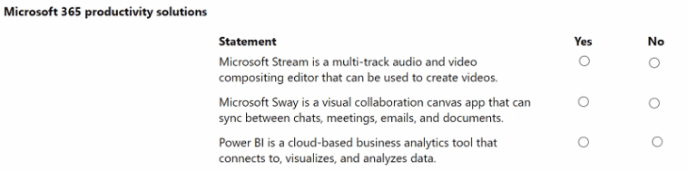 For each of the following statements, select Yes if the statement is true. Otherwise, select No.