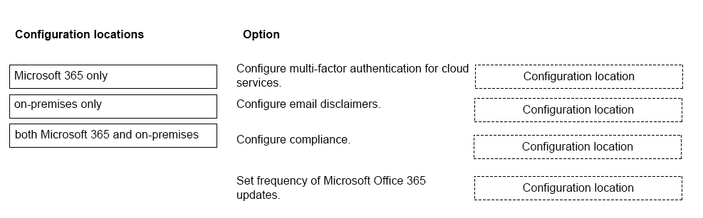 Match each item to the location where it willbe managed. To answer, drag the appropriate item from the column on the left to its location on the right. Each item may be used once, more than once, or not at all.