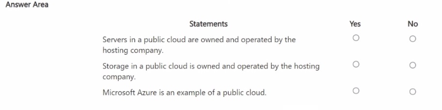 For each of the following statements, select Yes if the statement is true. Otherwise, select No.