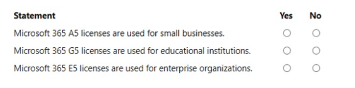 Instructions: For each of the following statements, select Yes if the statement is true. Otherwise, select No.