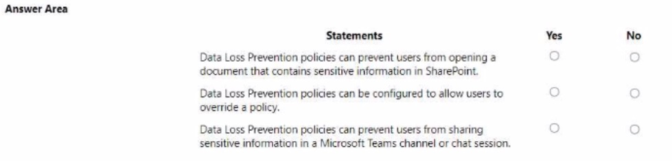 Instructions: For each of the following statements, select Yes if the statement is true.Otherwise, select No.