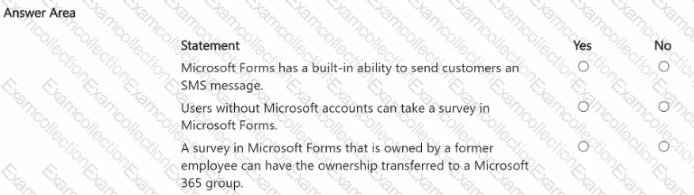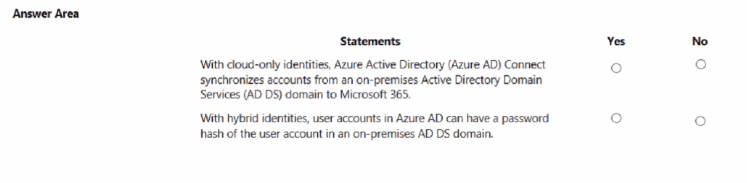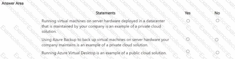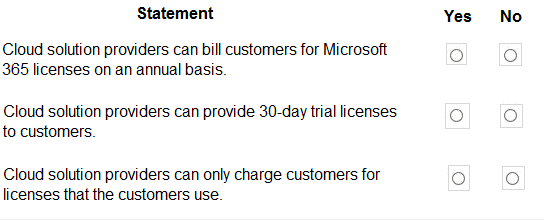 For each of the following statements, select Yes if the statement is true. Otherwise, select No.