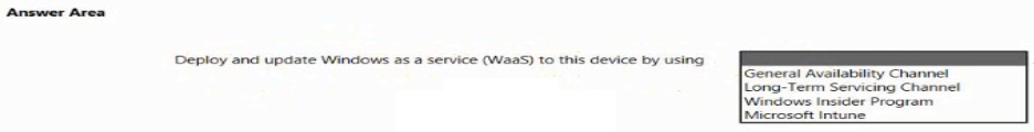 A company uses Microsoft 36S. The company has an application that runs on a device that does not have internet access. The device can only be updated manually every two years. You need to determine how you should update the device. Select the answer that correctly completes the sentence.