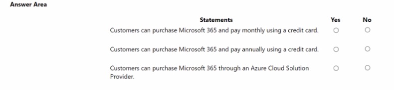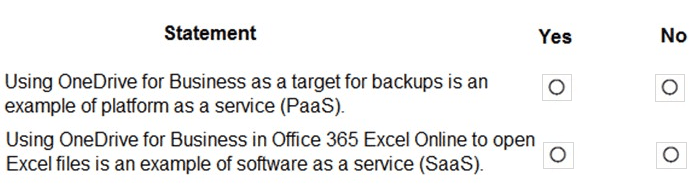 For each of the following statements, select Yes if the statement is true. Otherwise, select No.