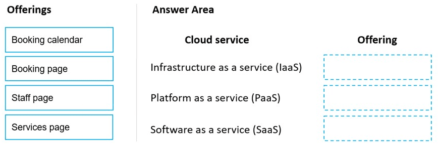 Instructions: To answer, drag the appropriate offering from the column on the left to the cloud service on the right. Each offering might be used once, more than once, or notat all.